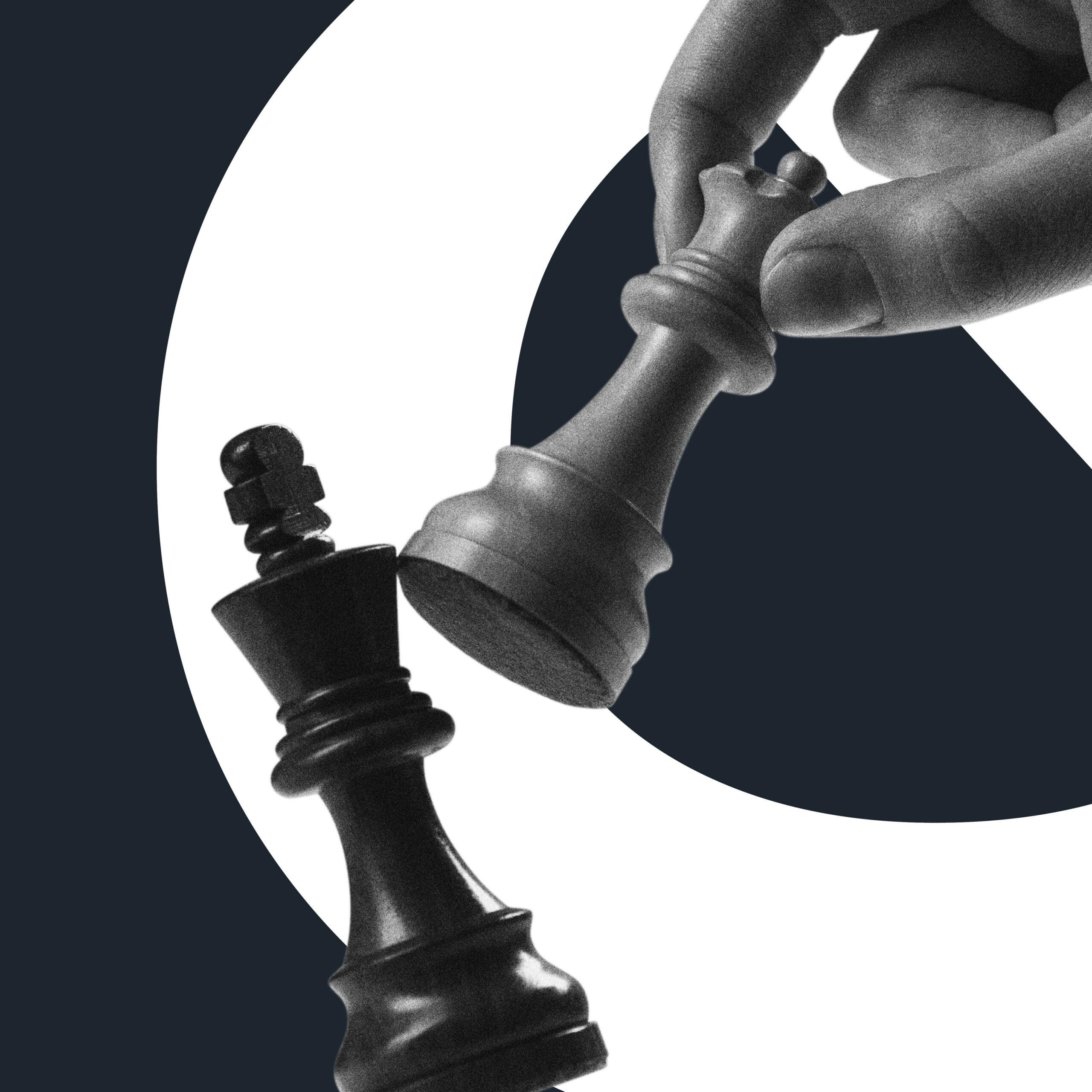A team of ants carrying a leaf. The ants and the leaf are in grey scale in front of a blue background with a white ampersand.